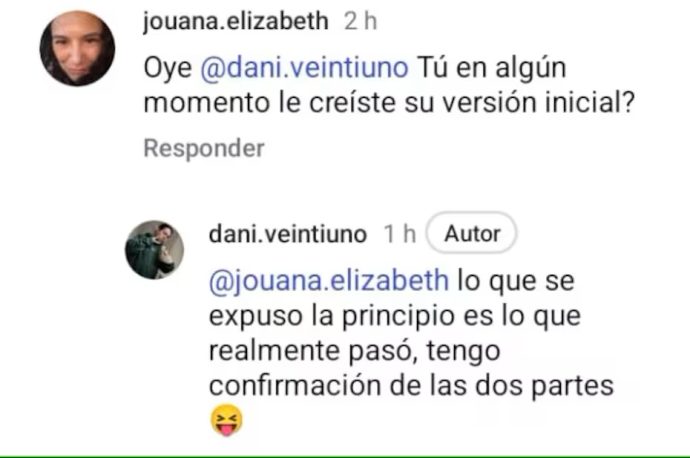 «¿Tú en algún momento le creíste su versión inicial?», le consultaron al tiktoker. Y su respuesta fue contundente: «Lo que se expuso al principio es lo que realmente pasó, tengo confirmación de las dos partes», aseguró.