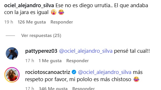 Ante la ola de comentarios, la actriz no dudó en reaccionar con humor y defender a su pareja. Con ironía, Toscano escribió en la misma publicación: «Más respeto por favor, mi pololo es más chistoso 😂».