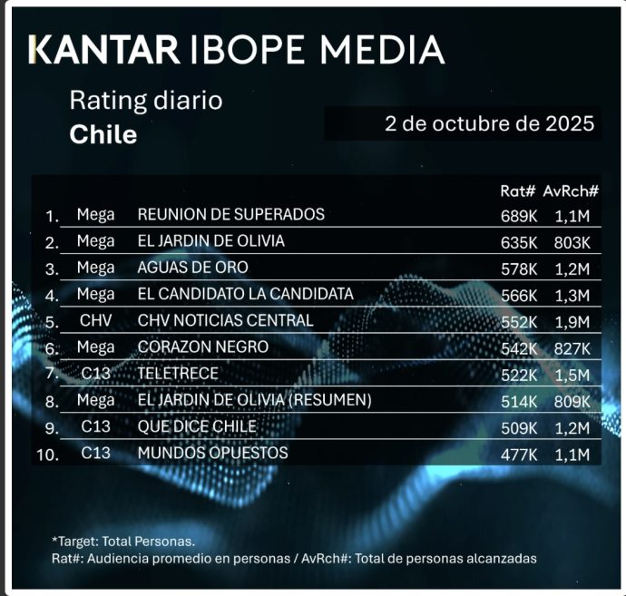 Rating TV Chilena: los programas más vistos del martes 30 de septiembre