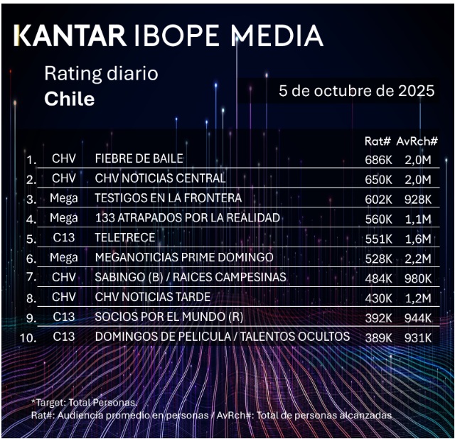 Rating TV Chilena: los programas más vistos del domingo 5 de octubre