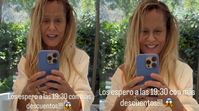 Bolocco grabó el video desde su casa frente a un espejo, mientras se tinturaba el cabello y mostraba su rostro completamente al natural, sin una gota de maquillaje. «Ay, ¿cómo están mis niñas hermosas? Perdón la facha, pero no podía esperar, tengo que avisarles. Ustedes saben que hoy día es Cyber y aunque mi marca ya tiene extraordinarios descuentos, tengo que avisarles que, para quienes me acompañan hoy día en un live a las 7:30 de la tarde, tengo unos cupones de descuento, más descuento», expresó la animadora, demostrando su cercanía y espontaneidad con sus seguidores.