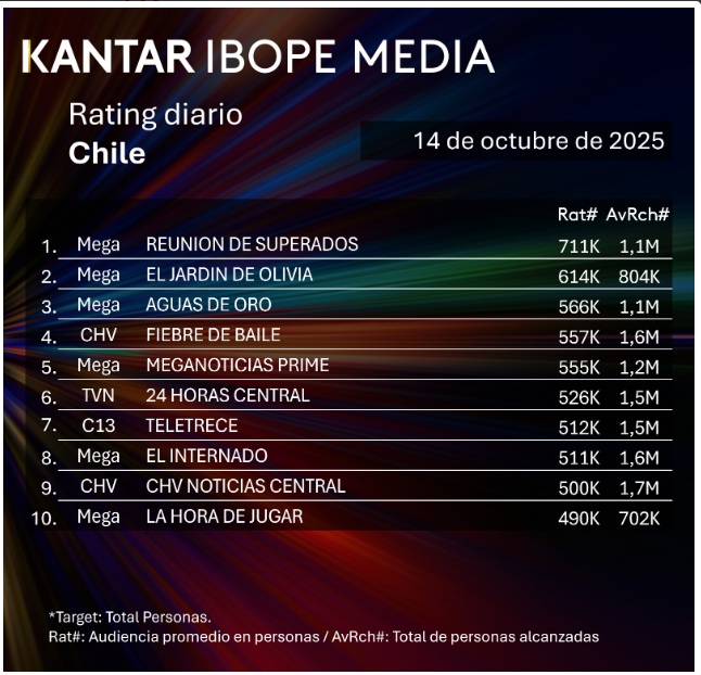 Rating TV chilena: estos fueron los programas más vistos del martes 14 de octubre
