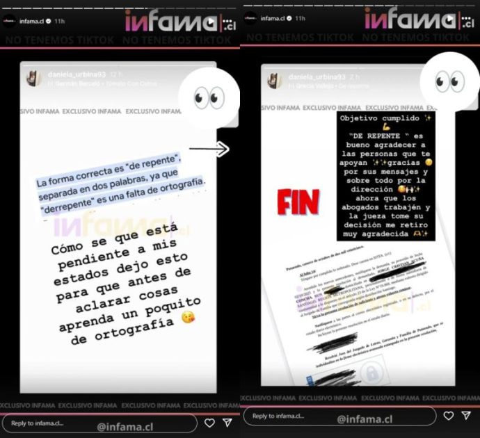 Daniela Urbina mostró además una captura de una demanda presentada contra Kike Acuña ante el Juzgado de Familia de Putanedo, lugar donde reside, dejando claro que su objetivo era hacer pública la situación y buscar justicia.