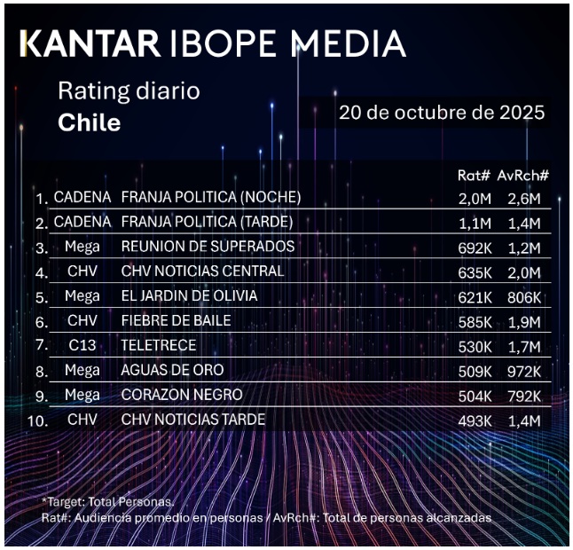 Rating TV chilena: los programas más vistos del lunes 20 de octubre