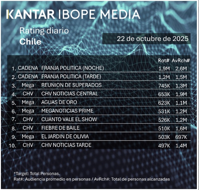 Rating tv chilena: resultados y programas más vistos del miércoles 22 de octubre