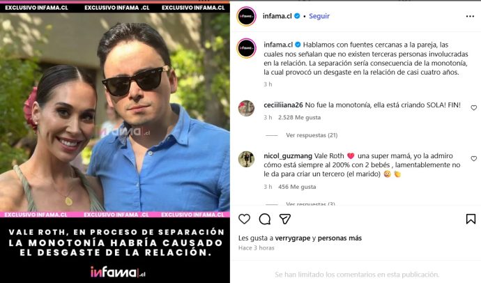 El medio Infama fue el encargado de revelar la noticia. Según informaron, fuentes cercanas a la pareja aseguraron que no existen terceras personas involucradas, sino que la separación habría sido consecuencia de la monotonía y el desgaste emocional tras casi cuatro años de relación.
