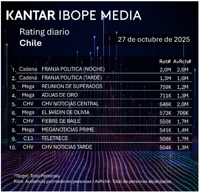 Rating TV chilena: los programas más vistos del lunes 27 de octubre