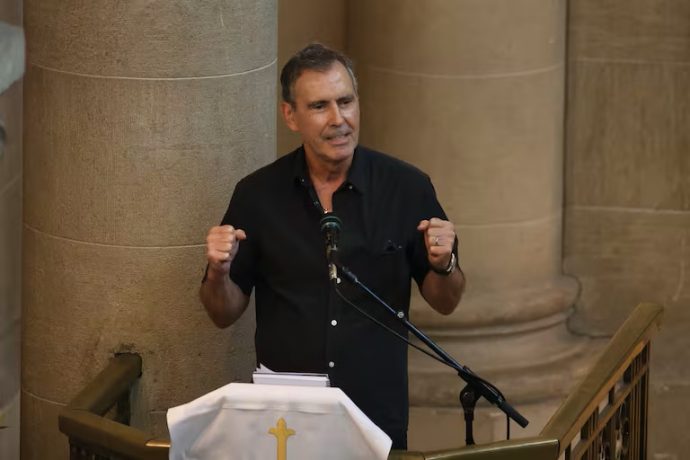 El momento generó sorpresa, especialmente cuando el actor se dirigió a la viuda de Noguera, Claudia Berger, diciendo: «Tranquila, Claudia… Claudita querida, no te asustes. Un par de recuerdos, va a ser un día largo».