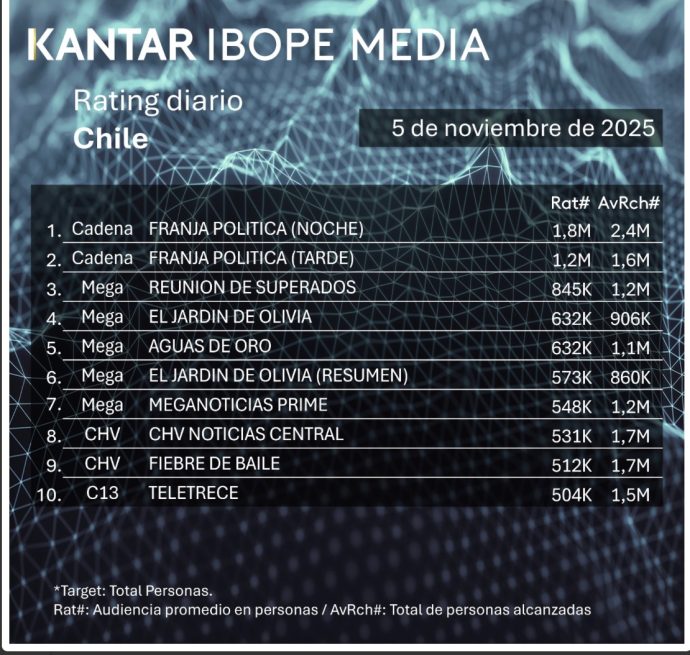 Rating TV chilena: los programas más vistos del miércoles 5 de noviembre