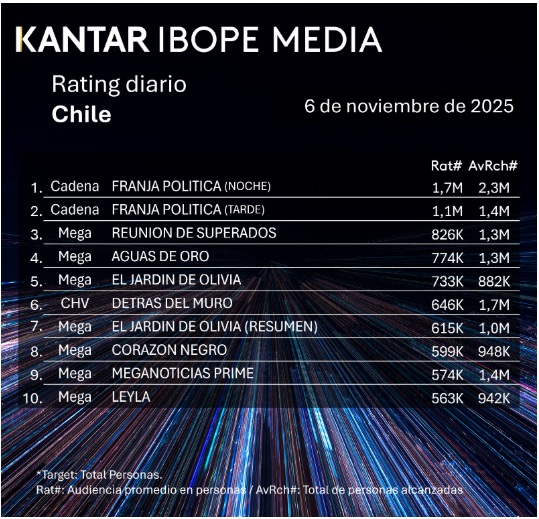 Rating TV chilena: los programas más vistos del jueves 6 de noviembre