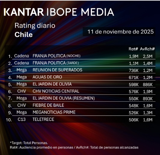Rating TV chilena: los programas más vistos del martes 11 de noviembre