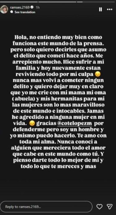 Posteriormente, el propio Lucas Lama rompió el silencio a través de sus redes sociales, donde reconoció su pasado con la justicia y expresó su arrepentimiento: «No entiendo muy bien cómo funciona el mundo de la prensa, pero quiero decir que asumo el delito que cometí hace años. Me arrepiento mucho. Hice sufrir a mi familia y hoy están reviviendo todo por mi culpa. Nunca más volví a cometer ningún delito».