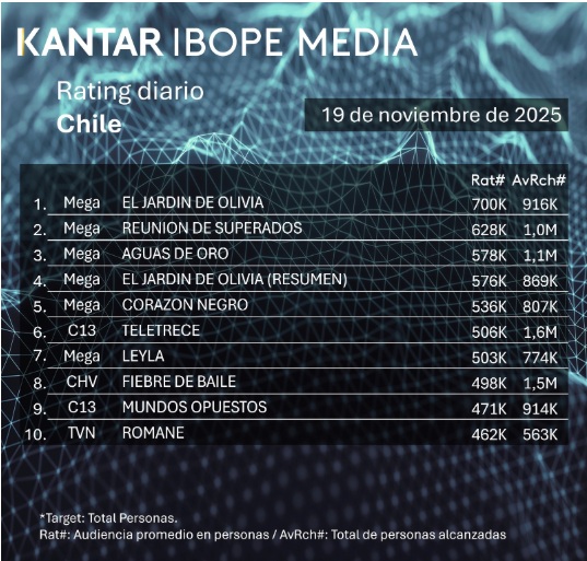 Rating TV chilena: los programas más vistos del miércoles 19 de noviembre
