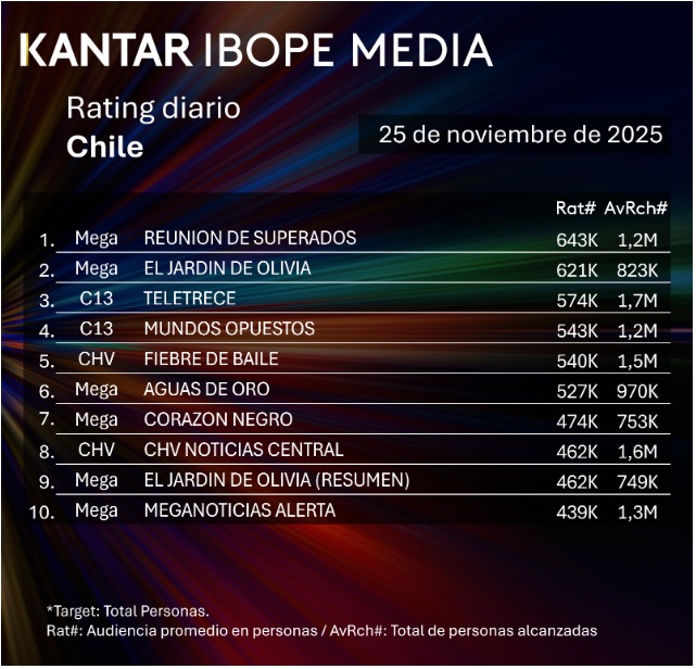 Rating TV chilena: los programas más vistos del martes 25 de noviembre