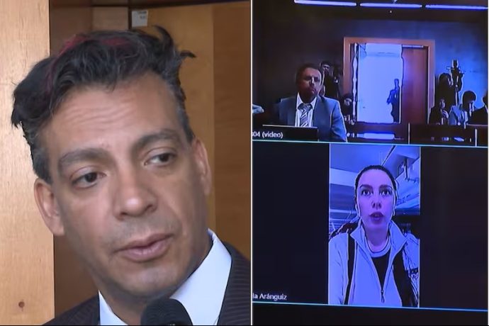 Para esta jornada, Juan David Rodríguez asistió presencialmente al tribunal, mientras que Daniela Aránguiz se conectó de manera telemática, ya que se encuentra fuera del país. Sin embargo, su conexión generó molestia inmediata.
