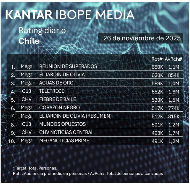 Rating TV chilena: los programas más vistos del miércoles 26 de noviembre