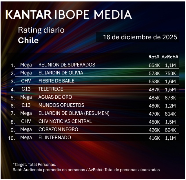 Rating TV chilena: los programas más vistos del martes 16 de diciembre
