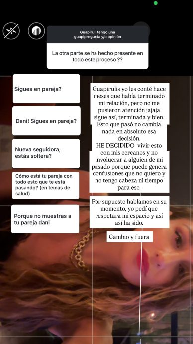 La influencer también confirmó que mantuvo una conversación con su expareja tras conocerse la noticia de la pérdida, pero enfatizó que fue únicamente lo necesario: «Por supuesto hablamos en su momento, yo pedí que respetara mi espacio y así ha sido. Cambio y fuera», concluyó.
