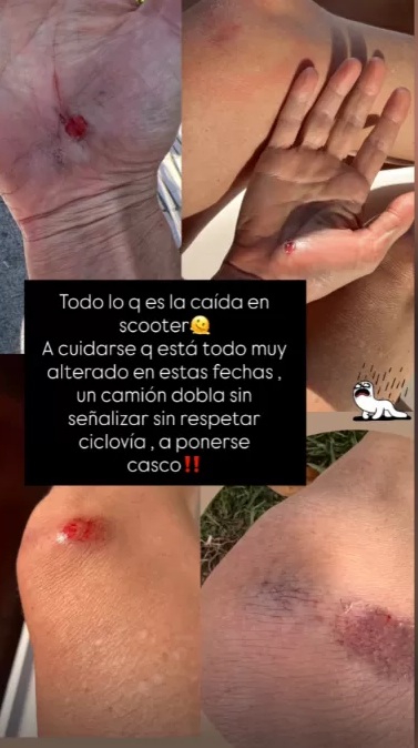 La actriz aprovechó la ocasión para explicar lo ocurrido y advertir sobre los riesgos de este tipo de vehículos. «Todo lo que es la caída en scooter. A cuidarse, que está todo muy alterado en estas fechas; un camión dobla sin señalizar, sin respetar ciclovía», relató Prieto, enfatizando la importancia de la precaución ante maniobras inesperadas.