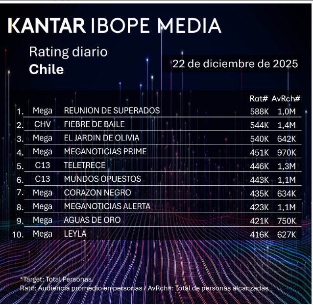 Rating TV chilena: los programas más vistos del lunes 22 de diciembre