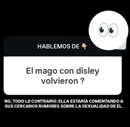 La controversia surgió cuando un seguidor preguntó al medio si la expareja seguía junta: «¿El Mago con la Disley volvieron?». La respuesta fue tajante: «No. Todo lo contrario. Ella estaría comentando a sus cercanos rumores sobre la sexualidad de él».