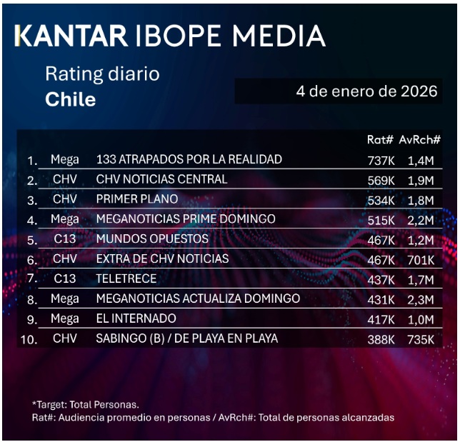 Rating TV chilena: los programas más vistos del domingo 4 de enero