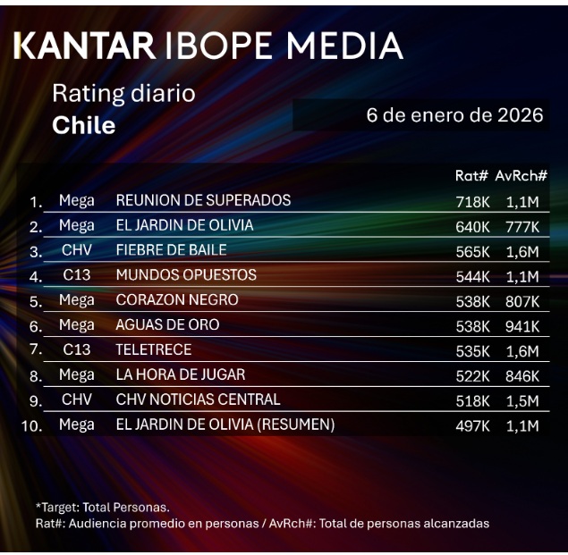 Rating TV chilena: los programas más vistos del martes 6 de enero