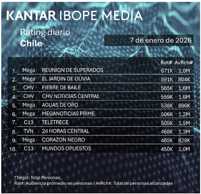 Ratng TV chilena: los programas más vistos del miércoles 7 de enero