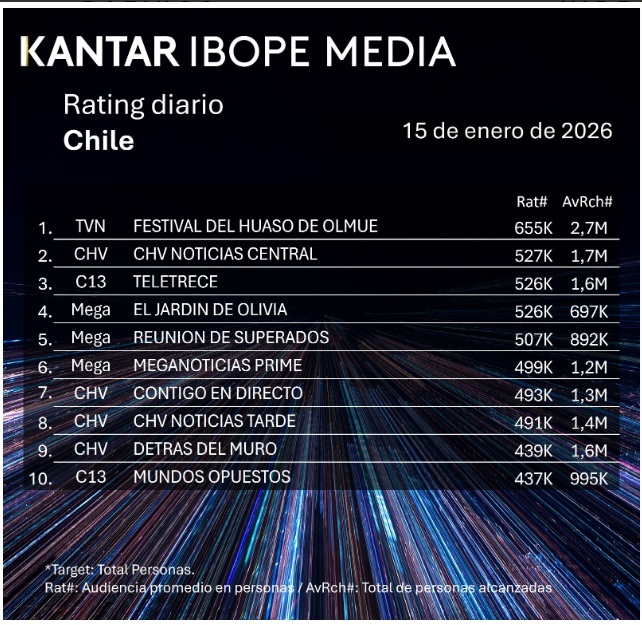 Rating TV chilena: los programas más vistos del martes 13 de enero