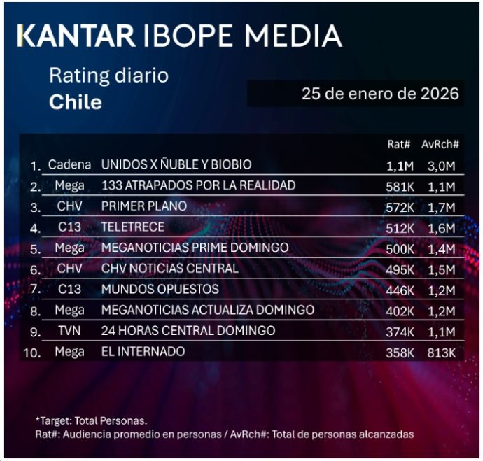 Rating TV chilena: los programas más vistos del domingo 25 de enero