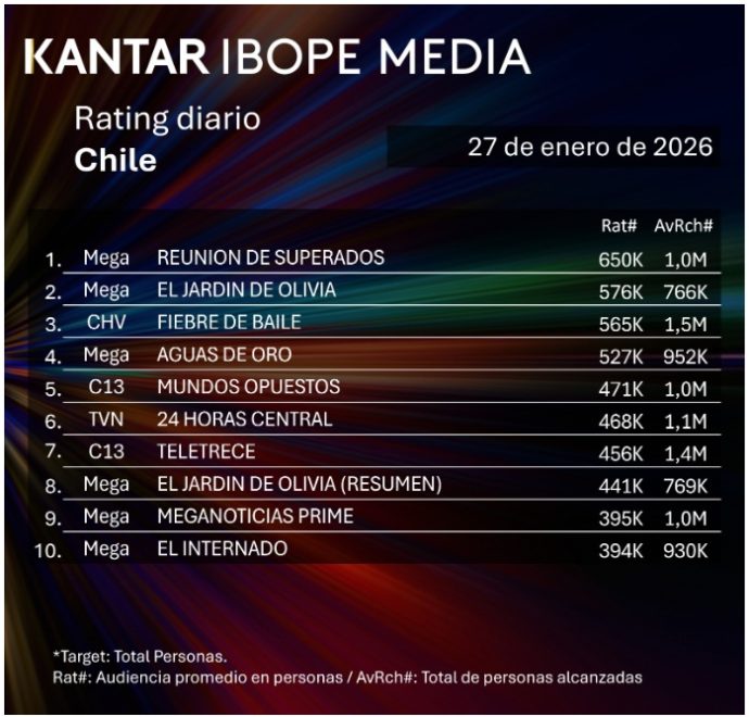 Rating TV chilena: los programas más vistos del martes 27 de enero