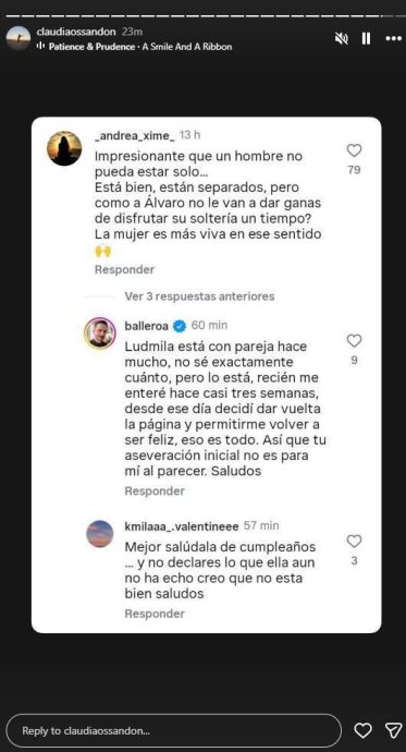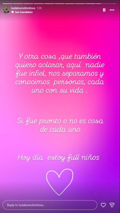 «Ludmila está con pareja hace mucho, no sé exactamente cuánto. Recién me enteré hace casi tres semanas; desde ese día decidí dar vuelta a la página y permitirme volver a ser feliz», comentó Ballero en su cuenta de Instagram.