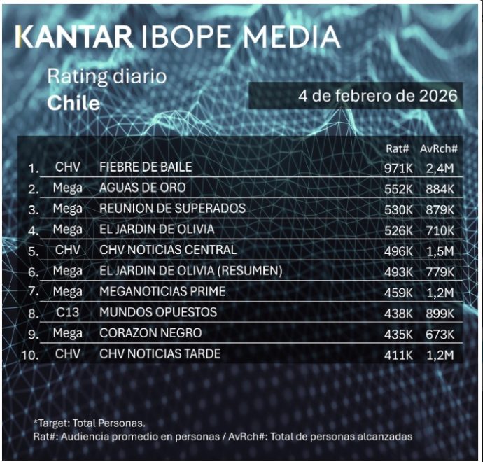 Rating TV chilena: los programas más vistos del miércoles 4 de febrero