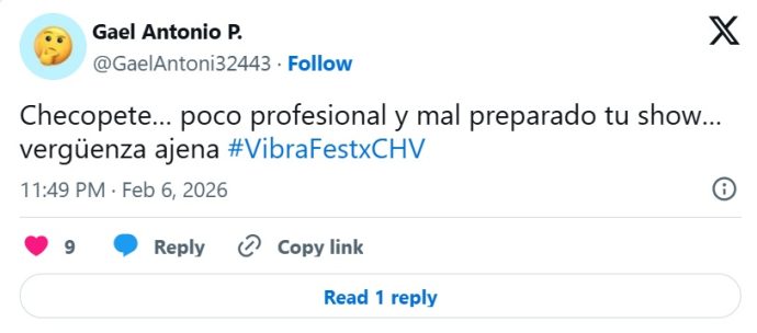 Lee también: Felipe Parra pasa de pifias a aplausos en su paso por el Festival de Olmué 2026
