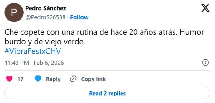 Aunque algunas personas presentes en el festival se rieron con la presentación, la reacción de la audiencia en televisión y en redes sociales fue distinta. Muchos usuarios calificaron la rutina como «fome», cuestionando el contenido y el enfoque del humor.