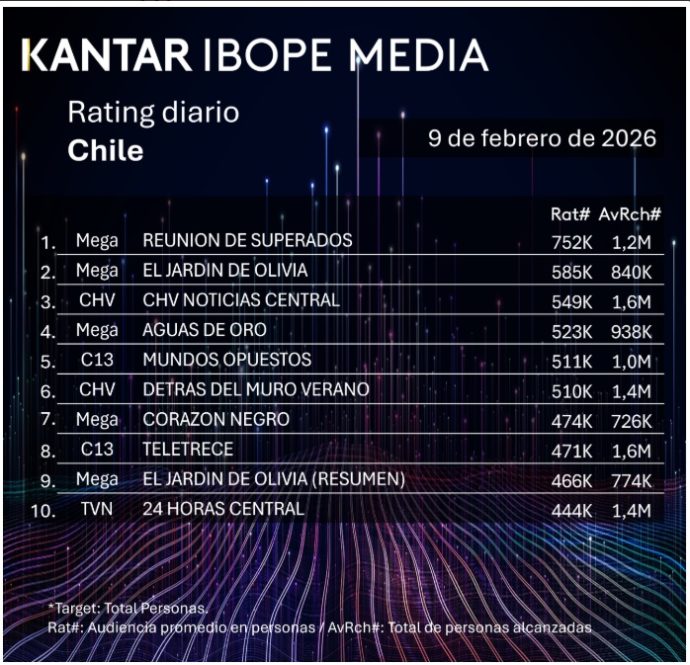 Rating TV chilena: los programas más vistos del lunes 9 de febrero