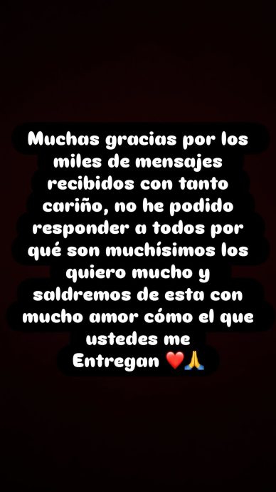«Muchas gracias por los miles de mensajes recibidos con tanto cariño. Los quiero mucho y saldremos de esta con mucho amor, como el que ustedes me entregan», escribió Pinilla en su publicación.