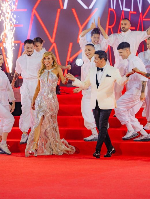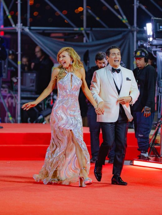 Karen apostó por un vestido plateado espectacular del diseñador tunecino Ali Karoui, que combinaba un elegante diseño halter blanco con cristalería bordada a mano y una espalda descubierta. La comunicadora se destacó por su estilo sofisticado y su porte elegante, convirtiéndose en uno de los focos principales de la alfombra roja.