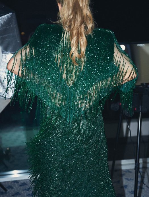 «Latinoamérica está de fiesta en Viña 2026 y esta noche lucimos en el querido escenario de la Quinta Vergara un vestido de la destacada diseñadora argentina @mariagorof. María ha trabajado con influyentes personalidades del mundo y para esta noche pensó en un diseño muy especial. El verde esmeralda que colorea nuestra hermosa tierra llega a la Quinta Vergara con un femenino vestido que acentúa la figura y juega con flecos en movimiento. Gracias María por tu cariño y tu talento. ¡Bienvenidos a la segunda noche de Viña 2026!», escribió.