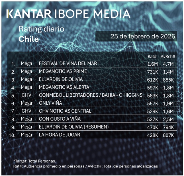Rating TV chilena: los programas más vistos del día miércoles 25 de febrero