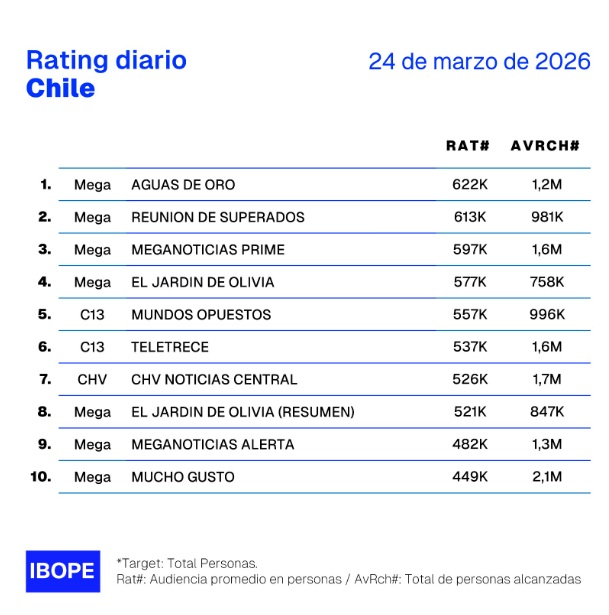 Rating TV chilena: los programas más vistos del día martes 24 de marzo