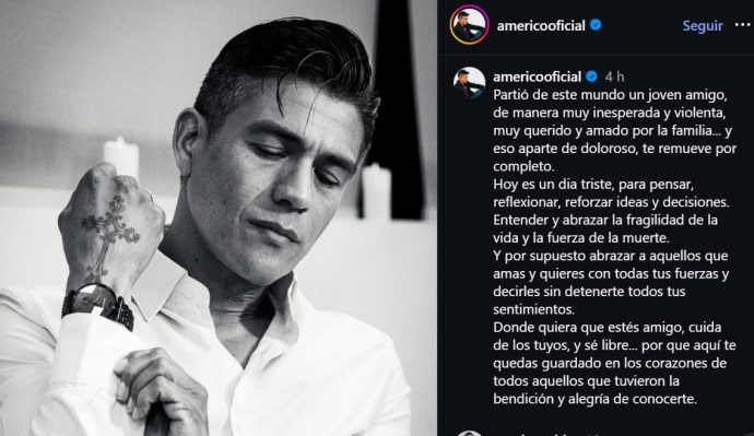 En su emotiva publicación, Américo escribió: «Partió de este mundo un joven amigo, de manera muy inesperada y violenta, muy querido y amado por la familia… y eso, aparte de doloroso, te remueve por completo».