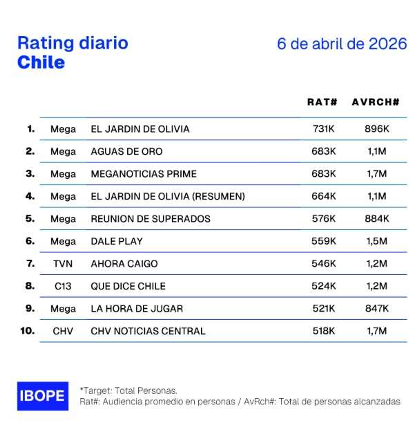 Rating TV chilena: los programas más vistos del día lunes 6 de abril