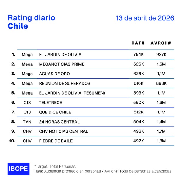 Rating TV Chilena: los programas más vistos del día lunes 13 de abril