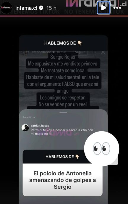 En medio del creciente enfrentamiento, se filtró un nuevo episodio que elevó aún más la polémica. La pareja de Antonella Ríos habría enviado un mensaje directo a Sergio Rojas, el cual fue difundido por el medio Infama a través de sus redes sociales.