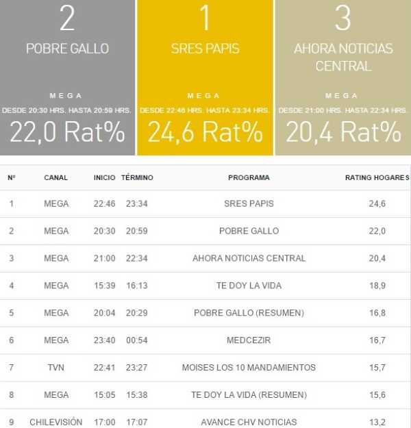 Rating TV chilena: los programas más vistos del miércoles 17 de diciembre