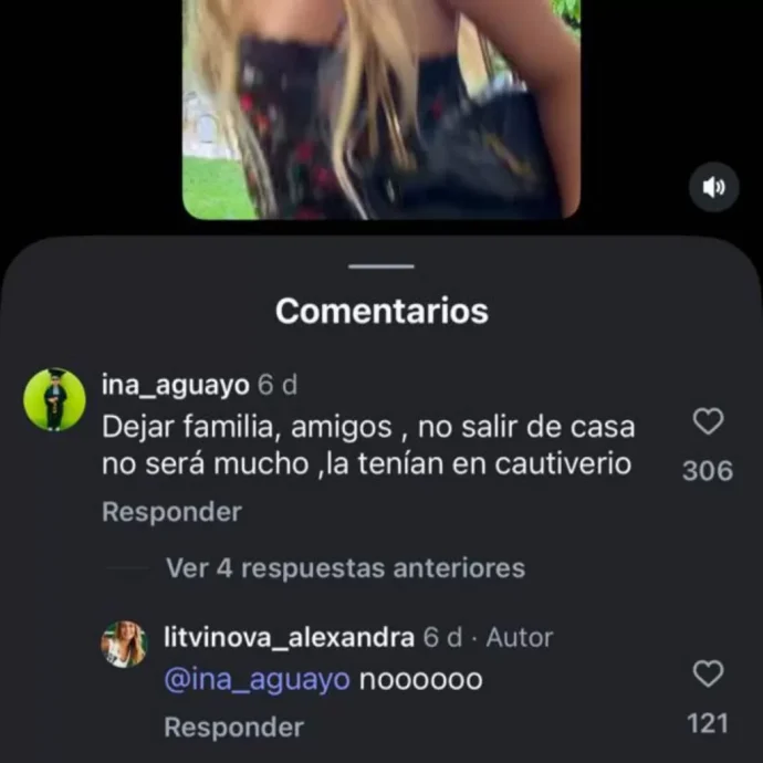 Finalmente, otra seguidora criticó: «Dejar familia, amigos, no salir de casa no será mucho, la tenían en cautiverio». Litvinova respondió de forma contundente: «Nooo».