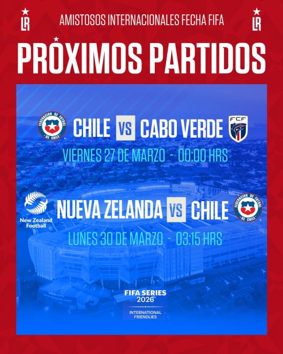 Este lunes, la FIFA oficializó los horarios y sedes de los próximos encuentros de La Roja durante la próxima fecha internacional de marzo. En esta oportunidad, Chile se enfrentará a dos selecciones clasificadas para el Mundial 2026: Cabo Verde y Nueva Zelanda.