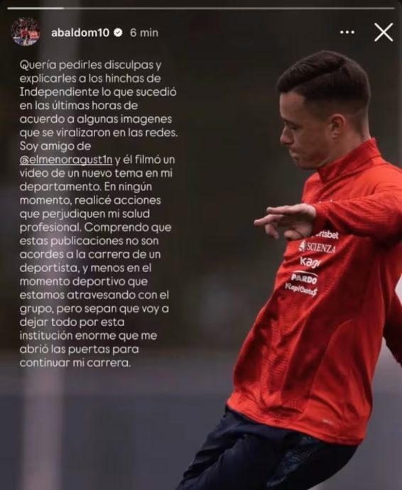 Ante la ola de críticas, Matías Abaldo ofreció disculpas públicas: «Quería pedirles disculpas y explicar a los hinchas de Independiente lo que sucedió en las últimas horas, según algunas imágenes que se viralizaron en las redes», declaró el atacante de 21 años.