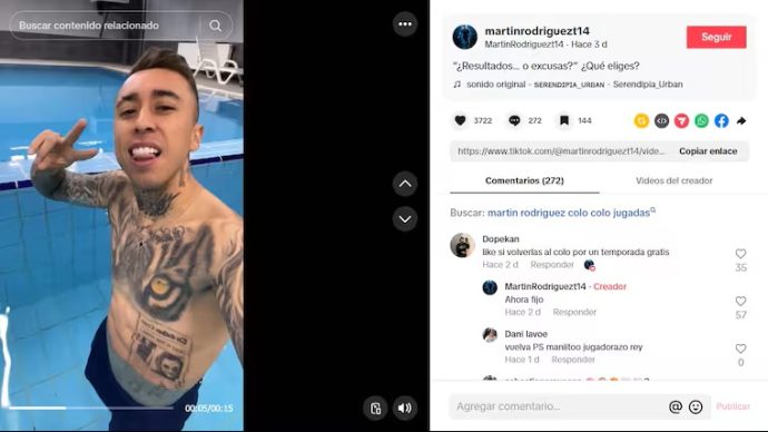 El delantero, actualmente en el Erzurumspor de la Segunda División de Turquía, llamó la atención de la dirigencia al revelar su propuesta a través de TikTok, donde interactuó con sus seguidores. Ante la pregunta de un usuario: «¿Volverías a Colo Colo por una temporada gratis?», Rodríguez respondió con un «Ahora fijo» y reafirmó su disposición con un «Sin problema bro».